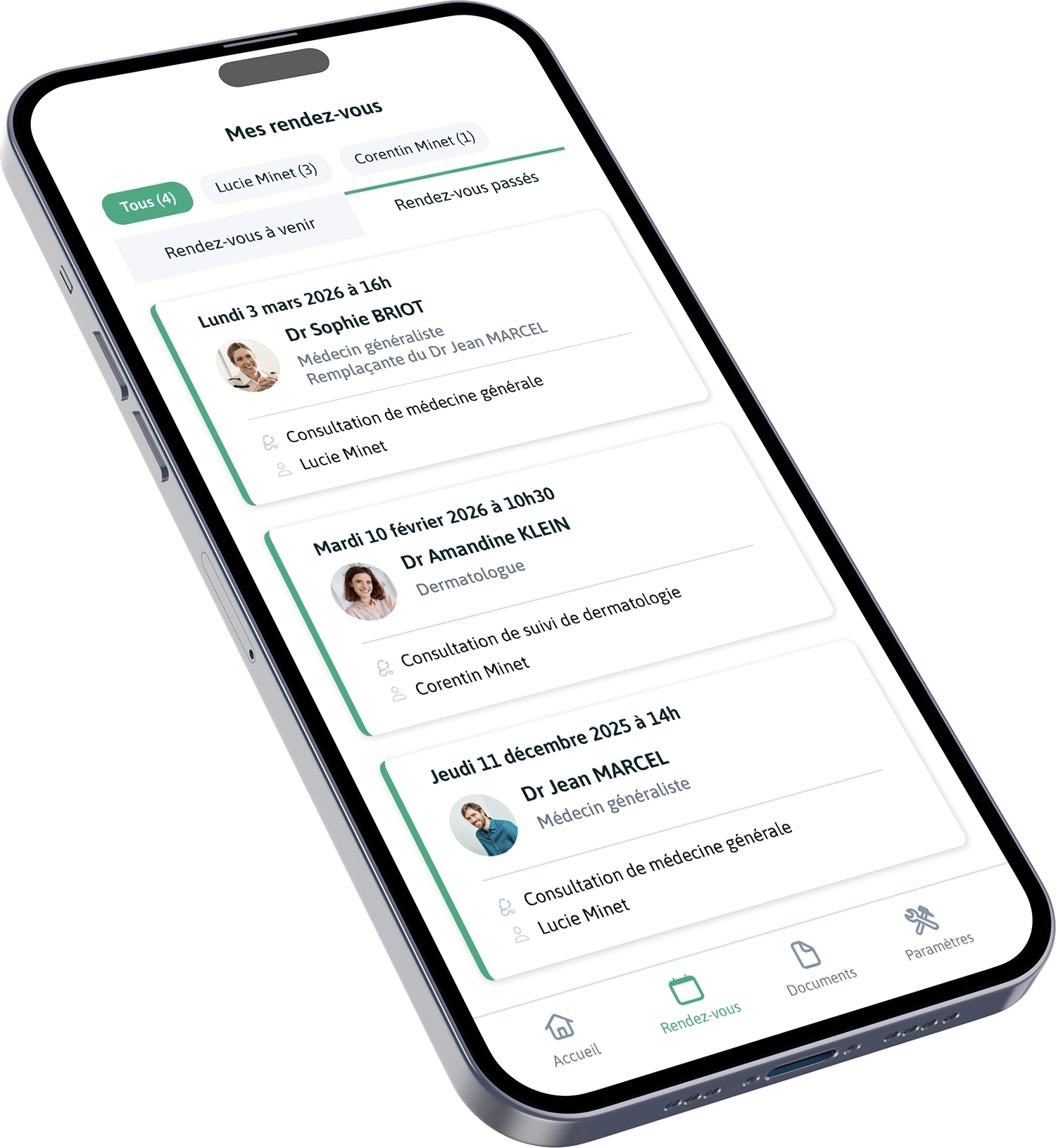 Les parents et aidants peuvent gérer les rendez-vous de leurs proches depuis un seul compte. L’application permet à vos patients de prendre rendez-vous pour eux et centraliser les informations au même endroit.